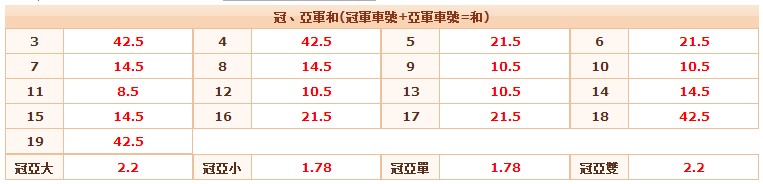 北京賽車PK10冠亞軍和賠率圖